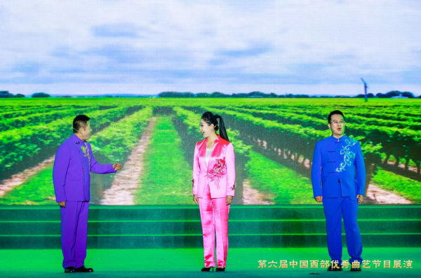 由自治区曲杂协选送,青铜峡市文化馆创作的宁夏小曲《说说心里话》代表宁夏参与了此次展演。作品以生活在贺兰山脚下乡村农民勤劳致富的真实故事为创作蓝本,用优美动听的宁夏数花唱调,生动地讲述了农民群众在乡村振兴战略指引下的幸福生活变迁,不仅有田间地头沉甸甸的丰收景象、医保养老政策带来的幸福保障、邻里之间互帮互助的和睦场景,还有着乡村振兴带来的和谐盛世画卷。演员们以激昂悠扬的演唱,搭架起四川与宁夏两地文化艺术交流的桥梁。
