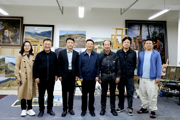 在美术工作室,调研组观看了宁夏美协副主席、宁夏美协油画艺委会主任、银川市文化艺术馆创研员王心悟的油画作品,并听取了相关工作汇报。随后围绕如何更好地运用油画形式展现新时代中国特色社会主义发展新成就、积极拓宽对外交流渠道、增强宁夏美术事业影响力等方面展开了深入交流。