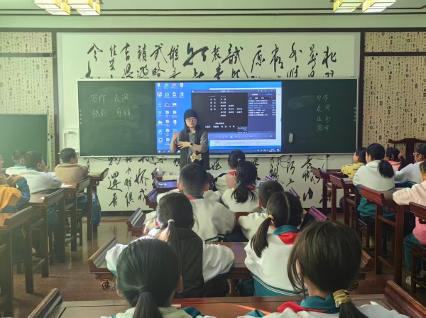 课堂伊始,刘钰老师播放了由闽宁第一小学“影视小屋”孩子们自主拍摄的短剧作品,激发了同学们对影视创作的好奇心。随后,刘钰老师结合短片内容,用通俗易懂的语言为孩子们讲解了一部完整影像作品的基本构成要素:从剧本写作如何构思精彩故事,到表演如何传递真实情感,从摄影如何捕捉美好瞬间,到剪辑如何串联精彩片段。她鼓励同学们:“影视创作并非遥不可及,只要怀揣热爱,团结协作,就能共同完成属于自己的影视作品。”